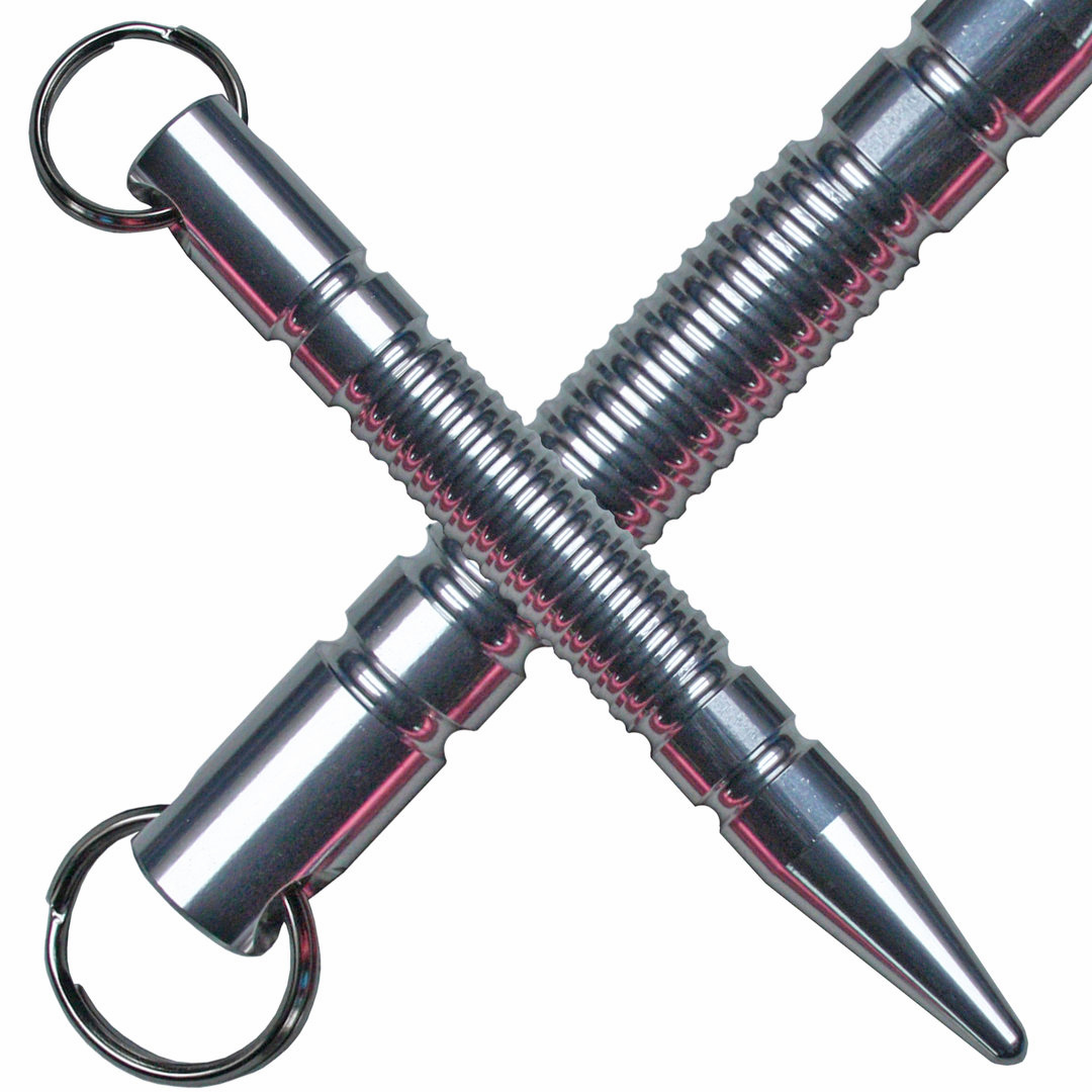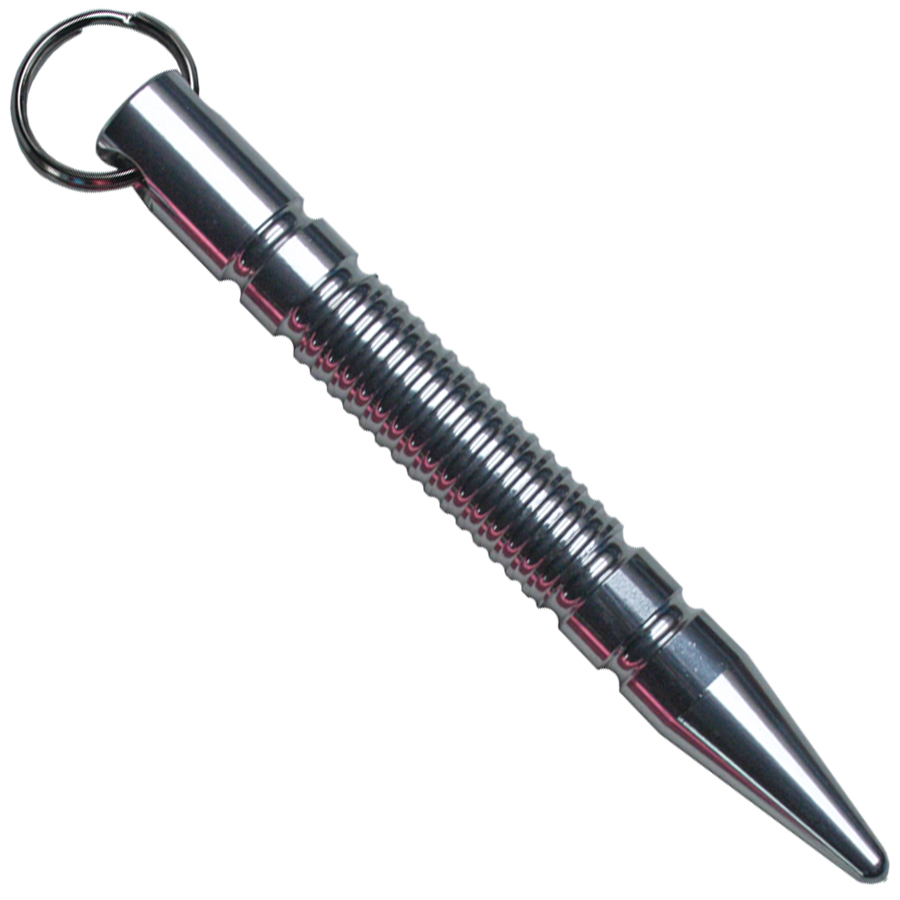 Buchner, Alu Kubotan, geriffelt, spitz, mit Schlüsselring, silber