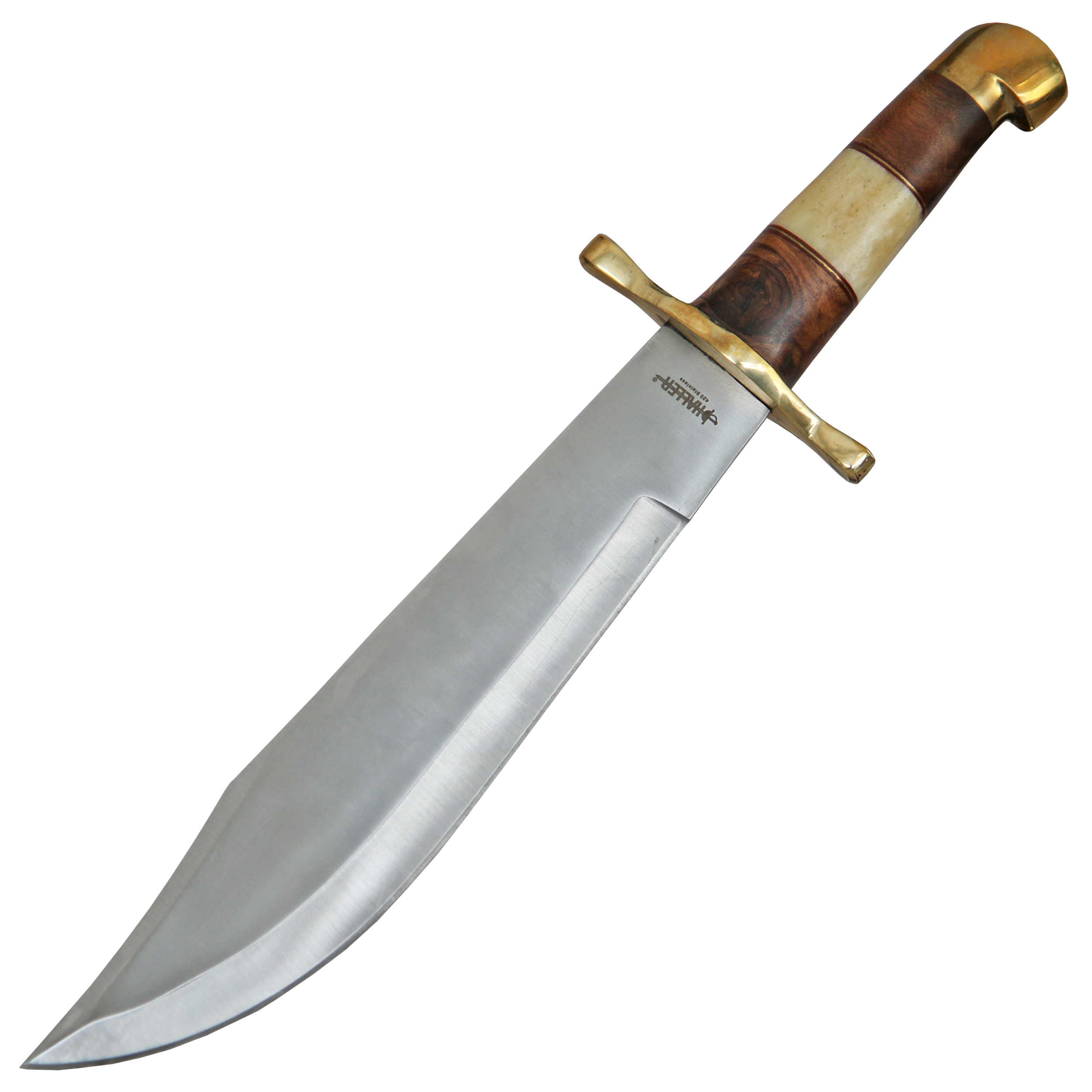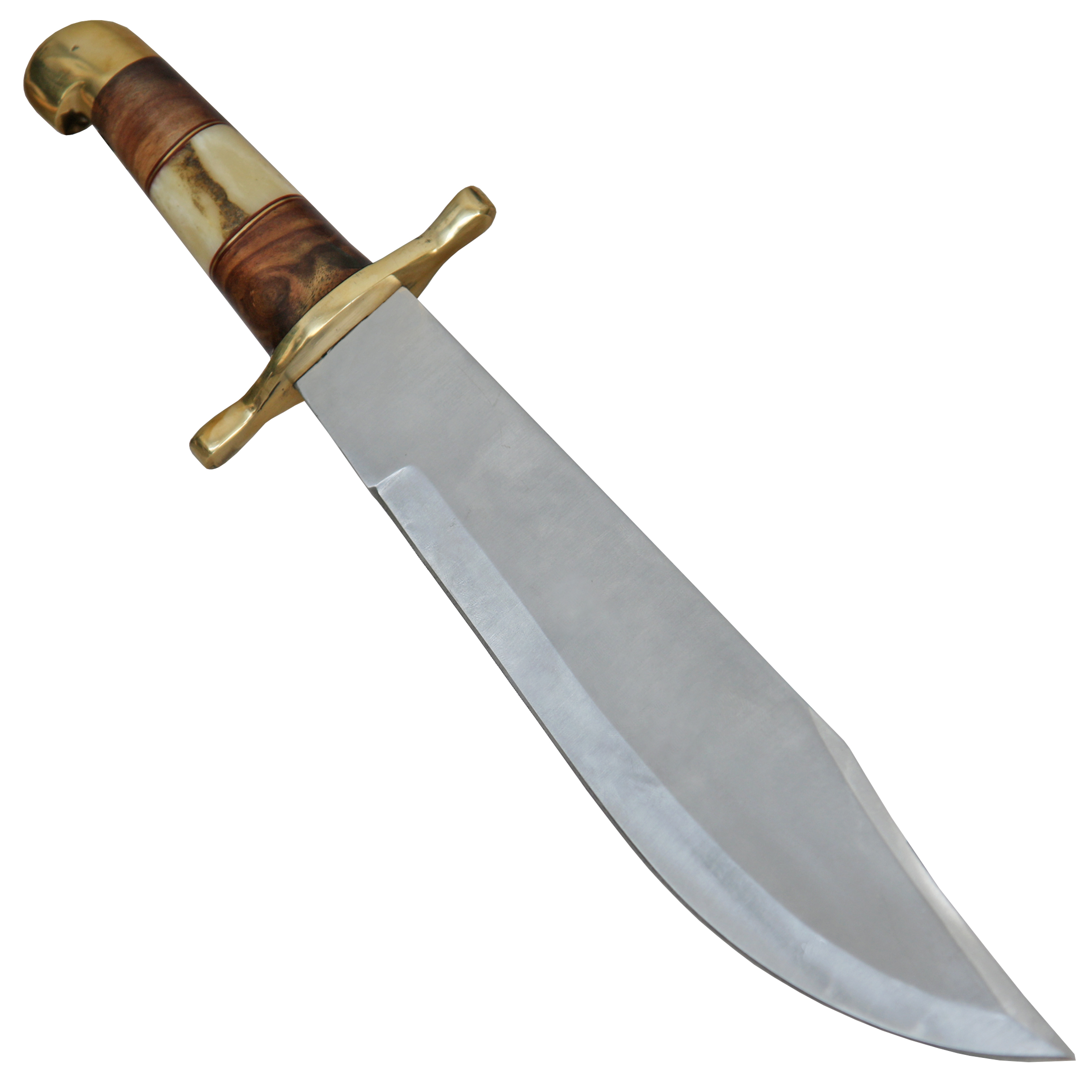 Ein einfaches Bowiemesser mit Griffbeschalung aus Holz und Knochen.