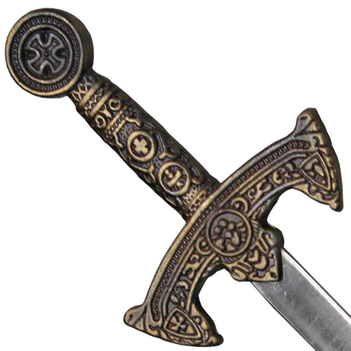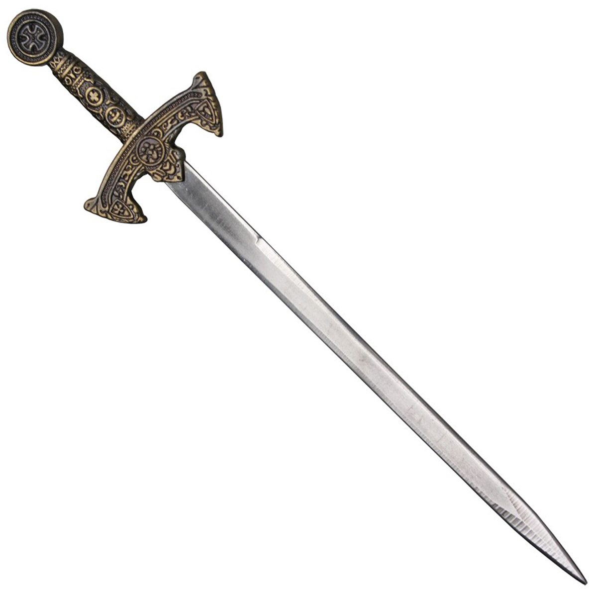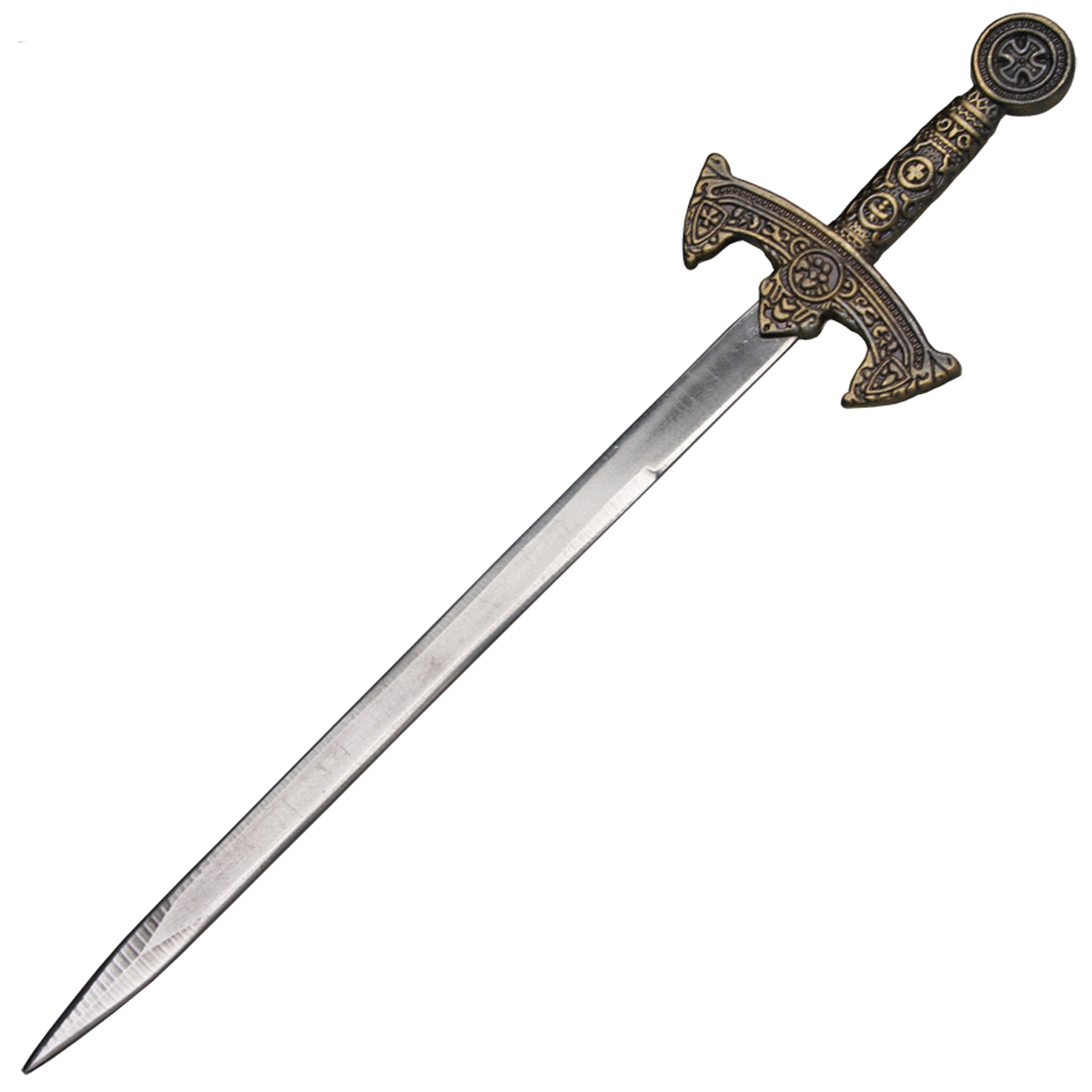 Dekorativer Brieföffner in Form eines Miniaturschwert Templer. Die Klinge ist aus rostfreien Stahl und nicht geschliffen. Der verzierte Schwertgriff ist aus Metallguß gefertigt.