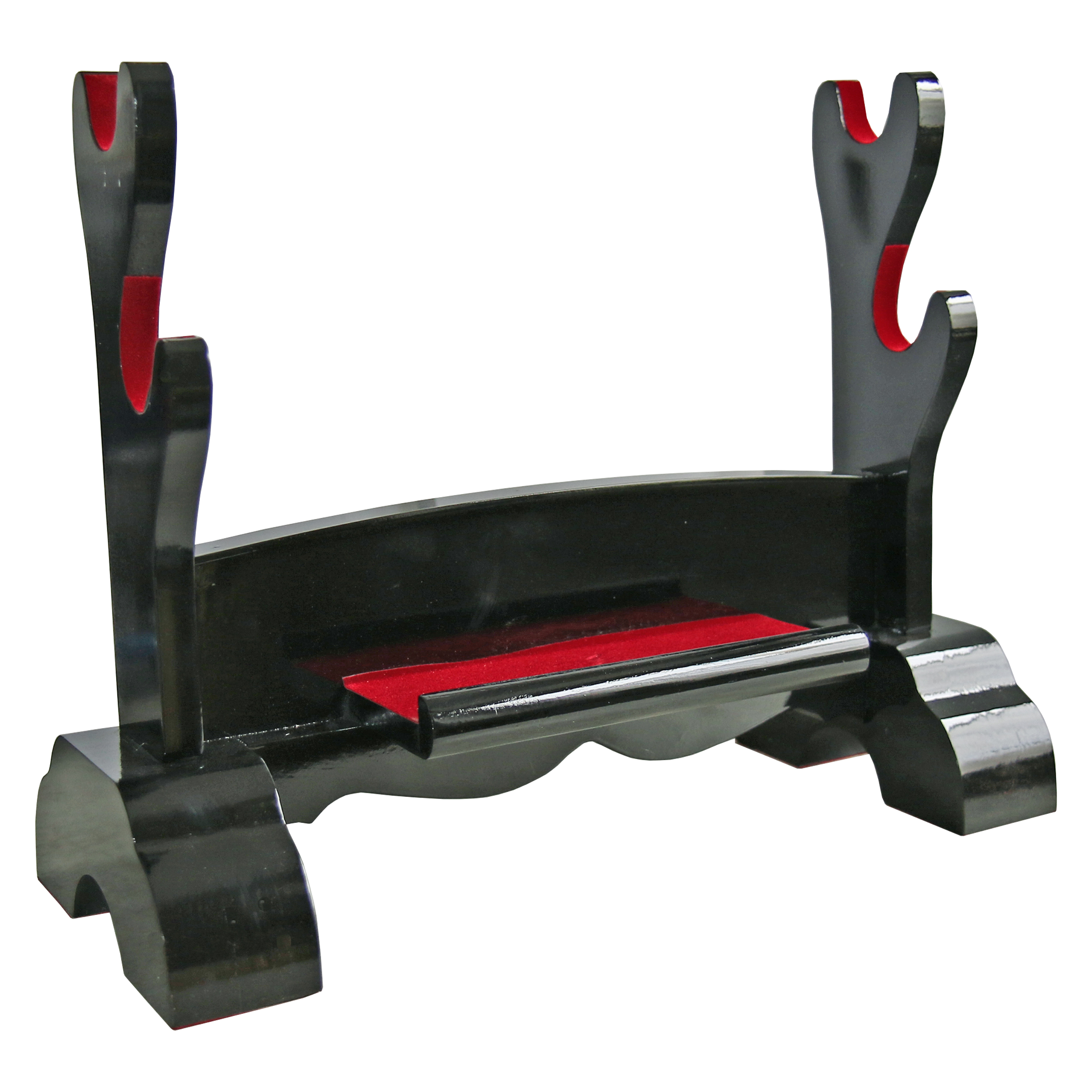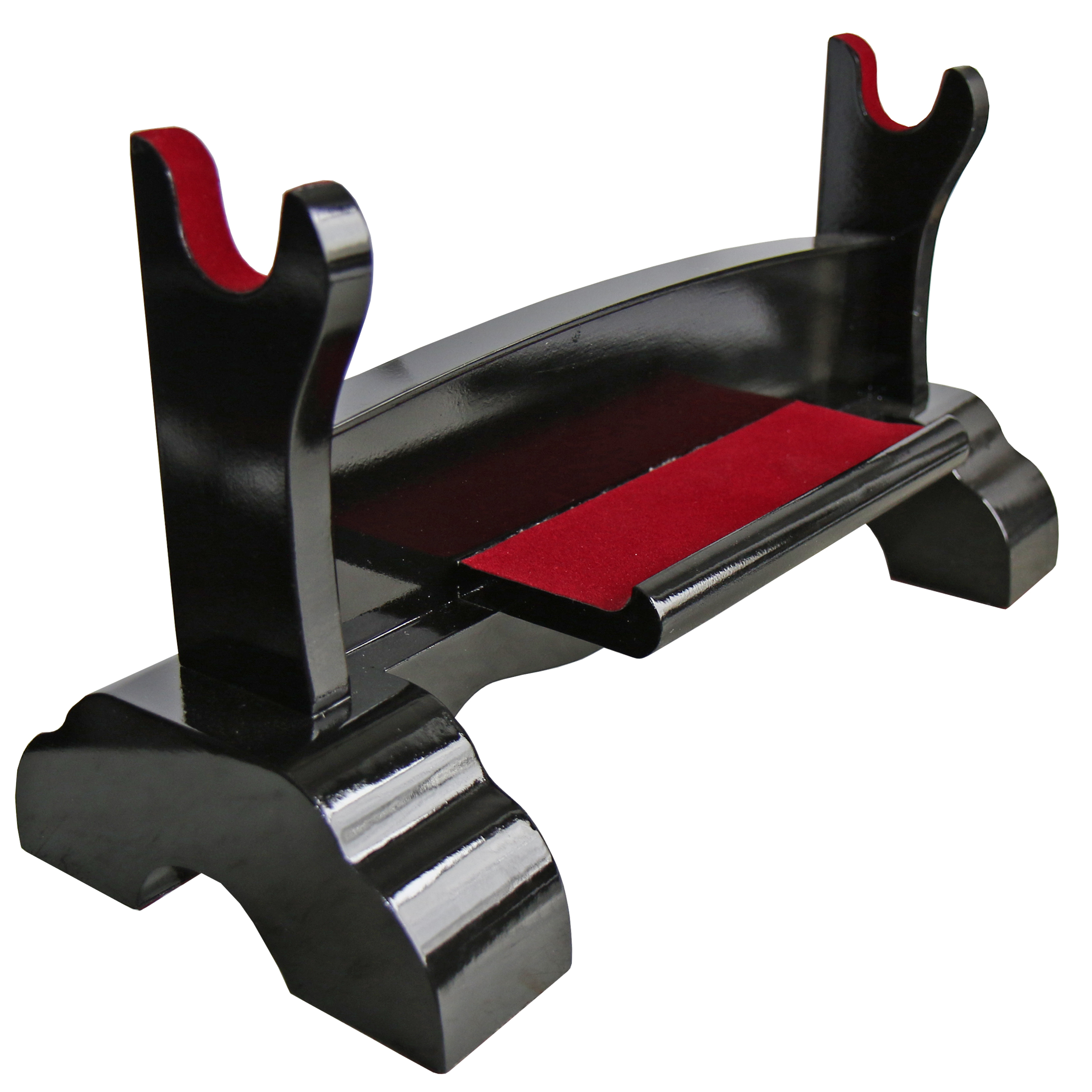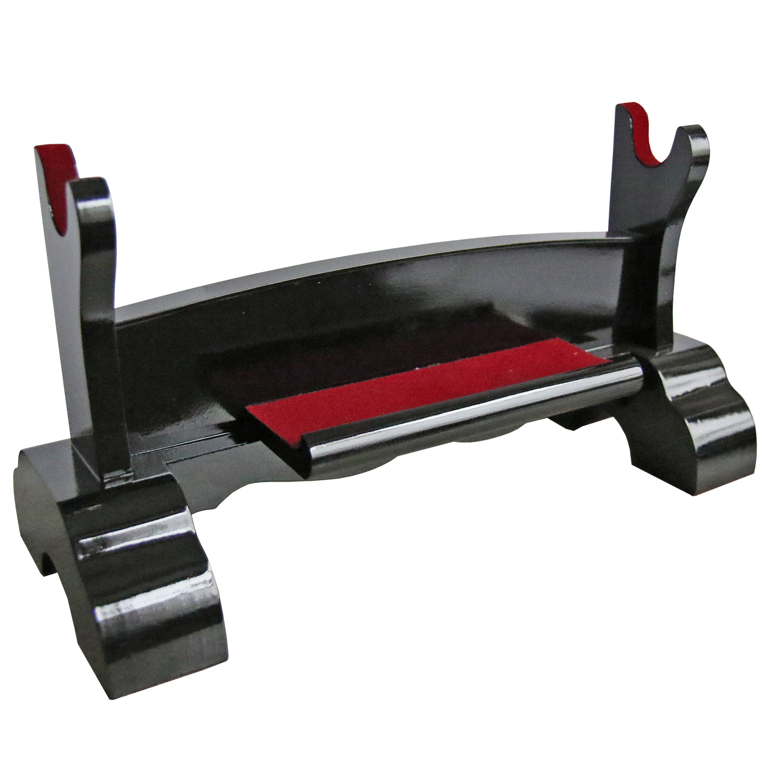 Hochwertiger Ständer aus Holz mit schwarzer Hochglanzlackierung.