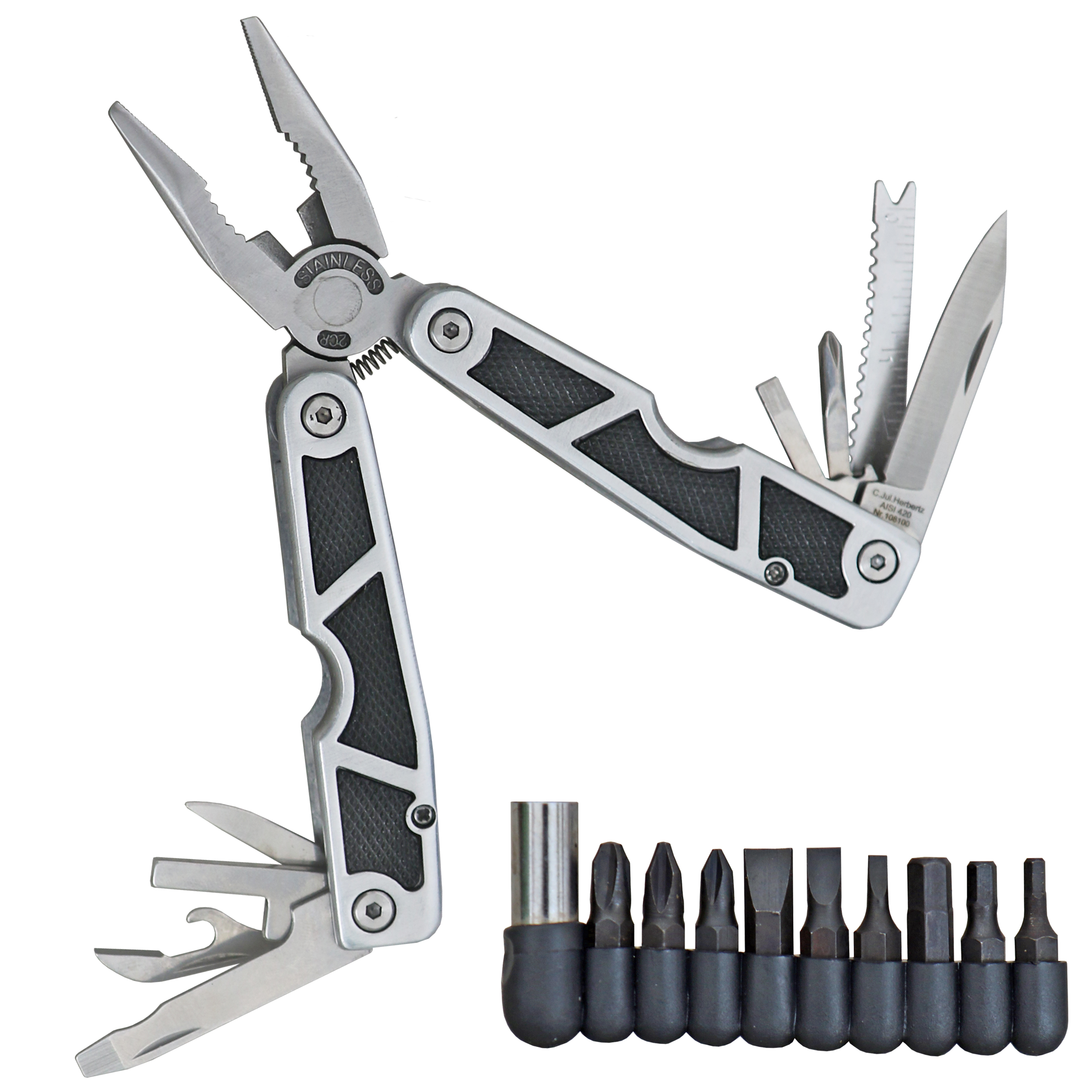 Zusätzlich zur Zange mit Drahtschneider bietet dieses kompakte Multitool aus