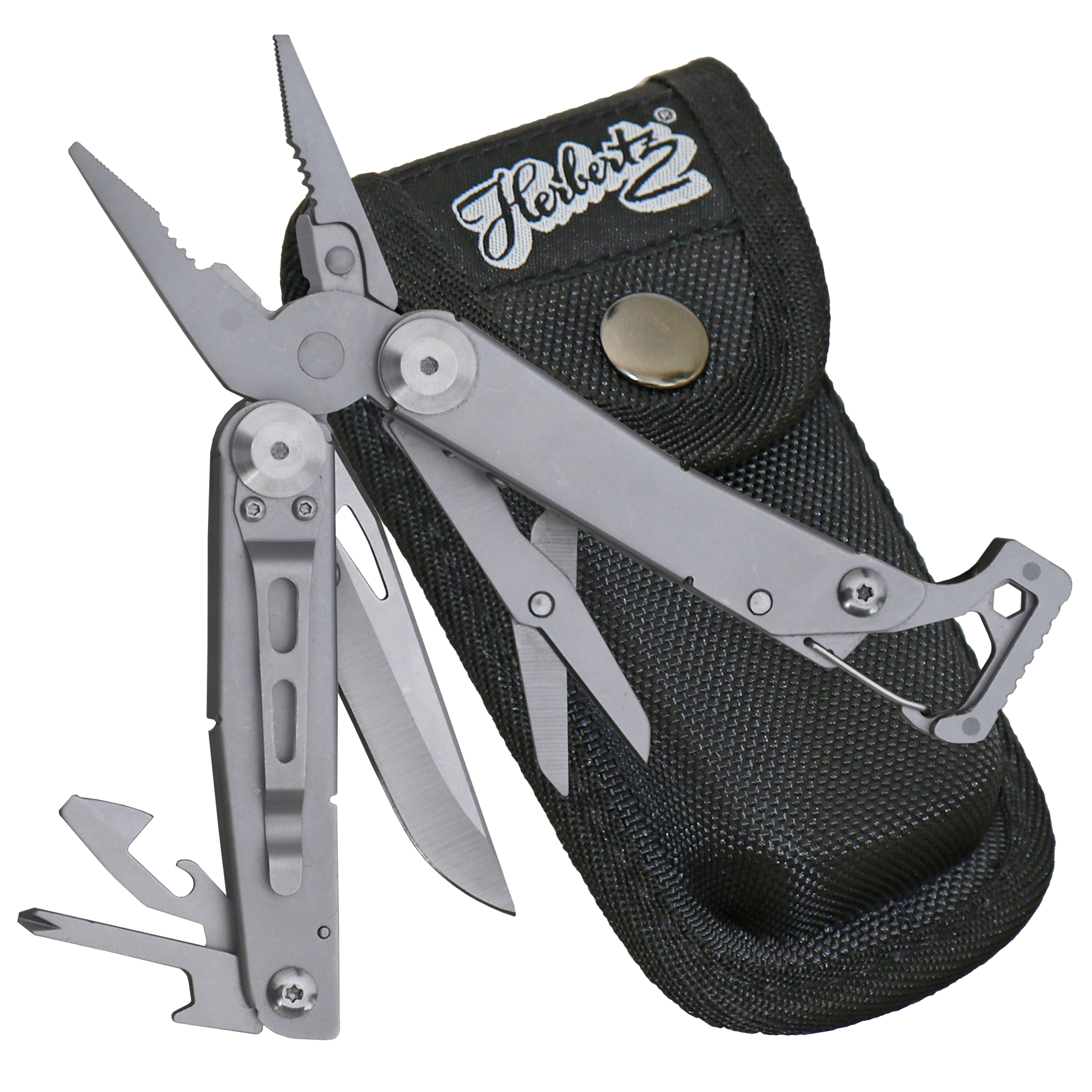 Herbertz, Multitool, Back-Lock, Karabiner, Edelstahl-Clip, Nylon Etui