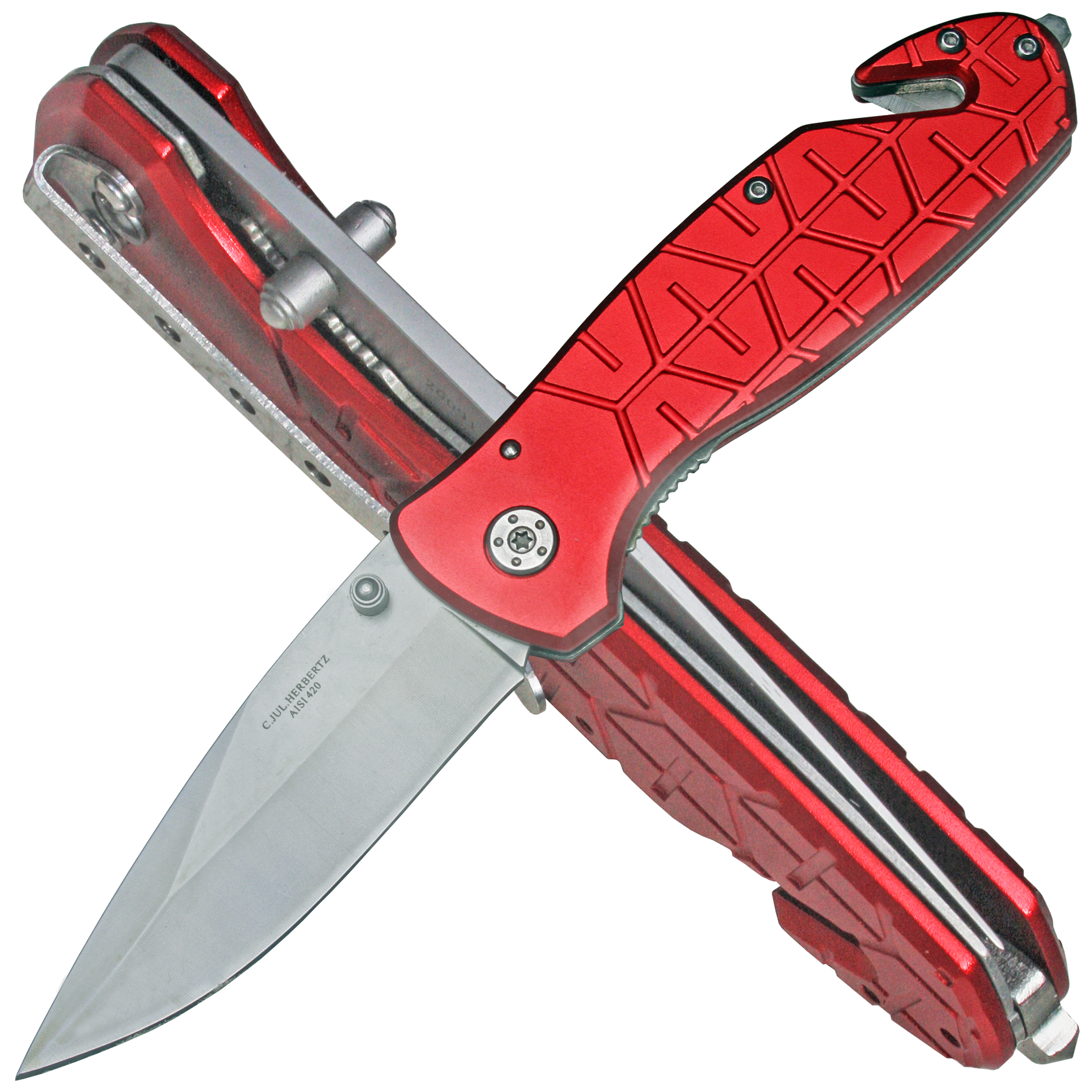Im markanten Rot erstrahlt das preisgünstige Herbertz Rettungsmesser.