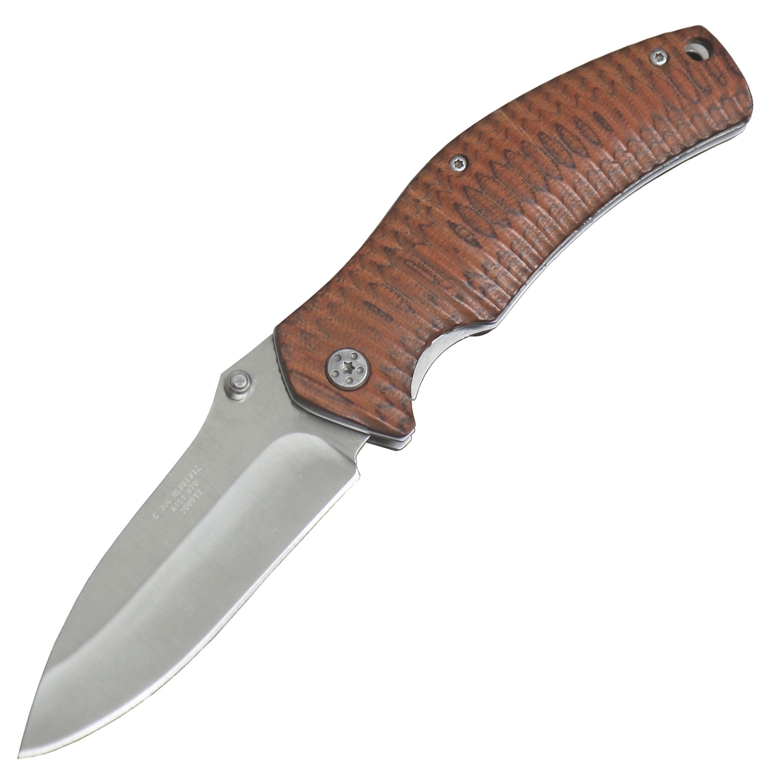 Als Griffmaterial kommt Pakkaholz zum Einsatz, welches durch die CNC gefertigte