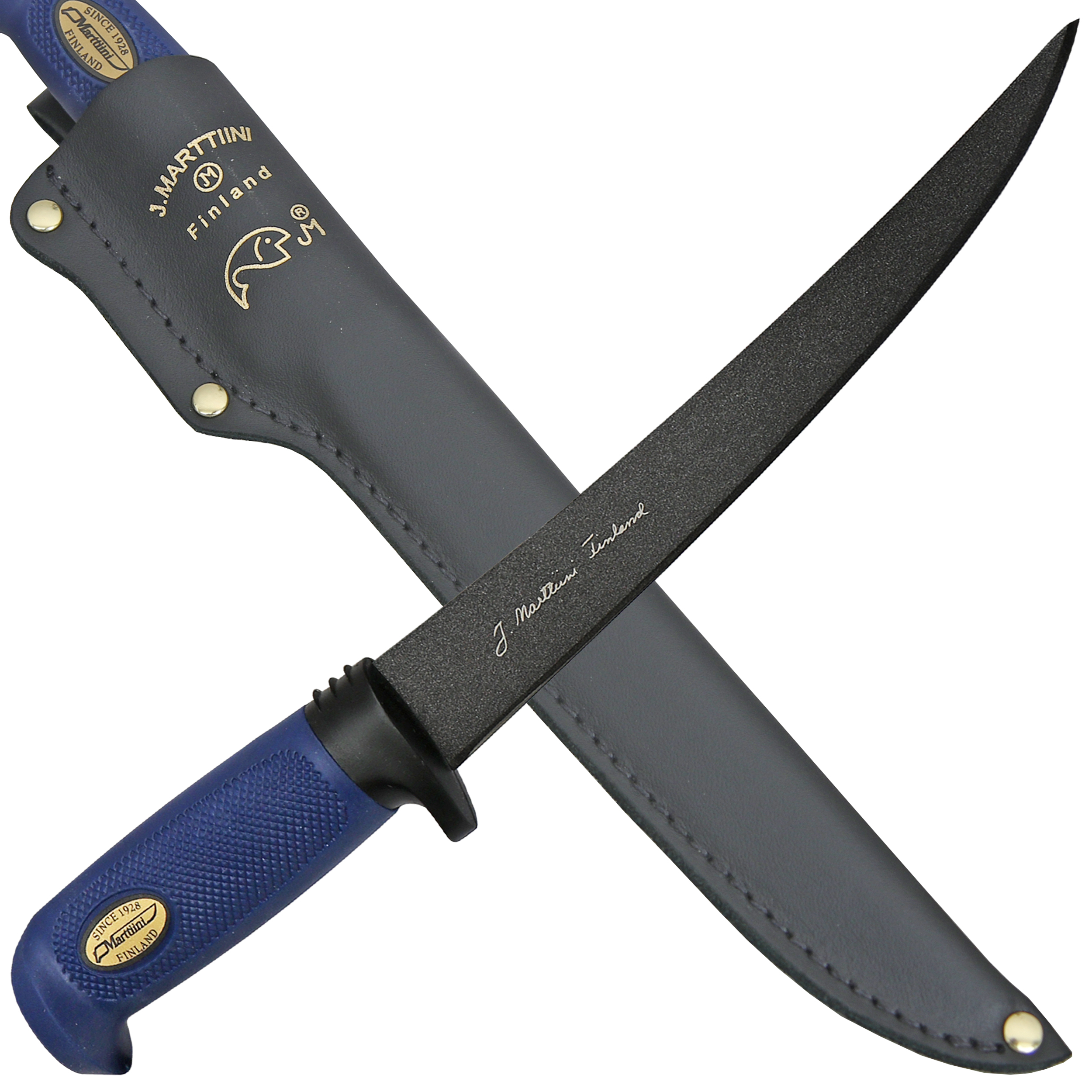 MARTTIINI Oy Filetiermesser "Martef Filleting Knife 23" Griff blau Lederscheide