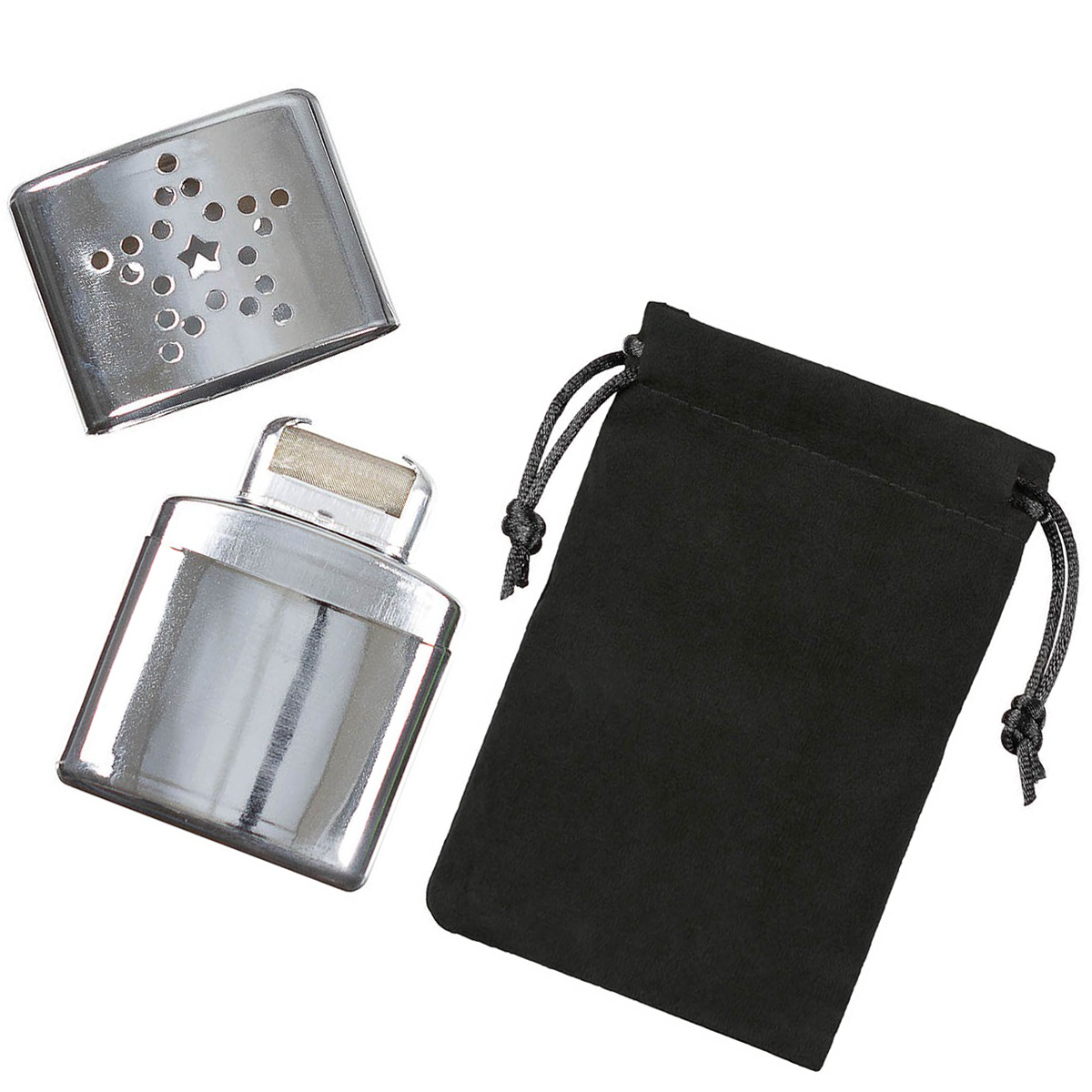 MFH, Handwärmer, Taschenwärmer, chrom, Transportbeutel