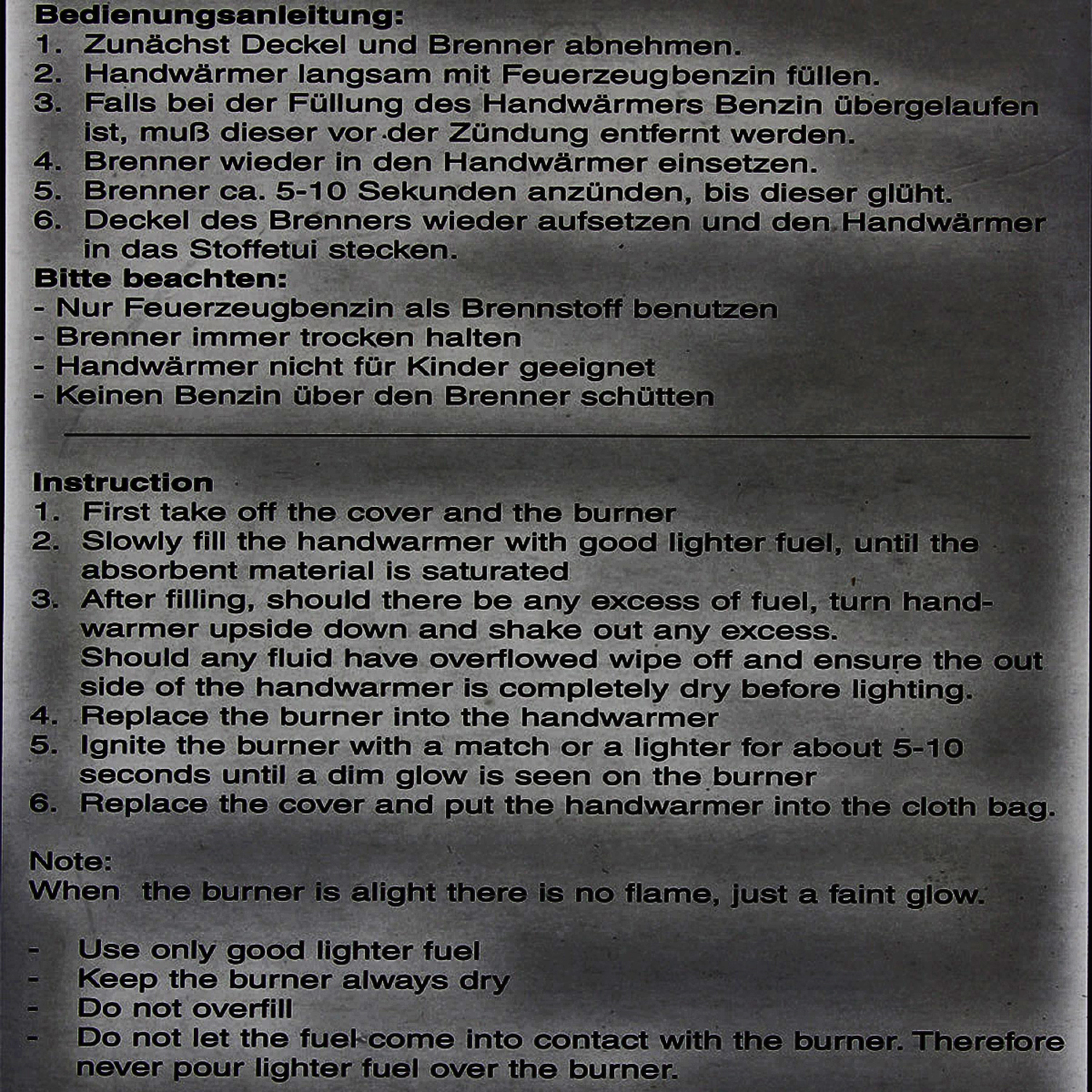Der Handwärmer wird unbefüllt geliefert