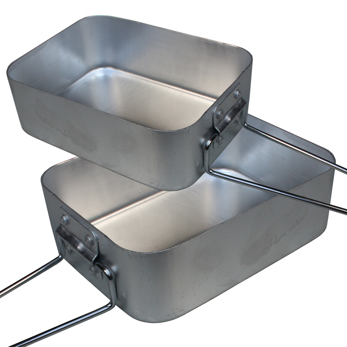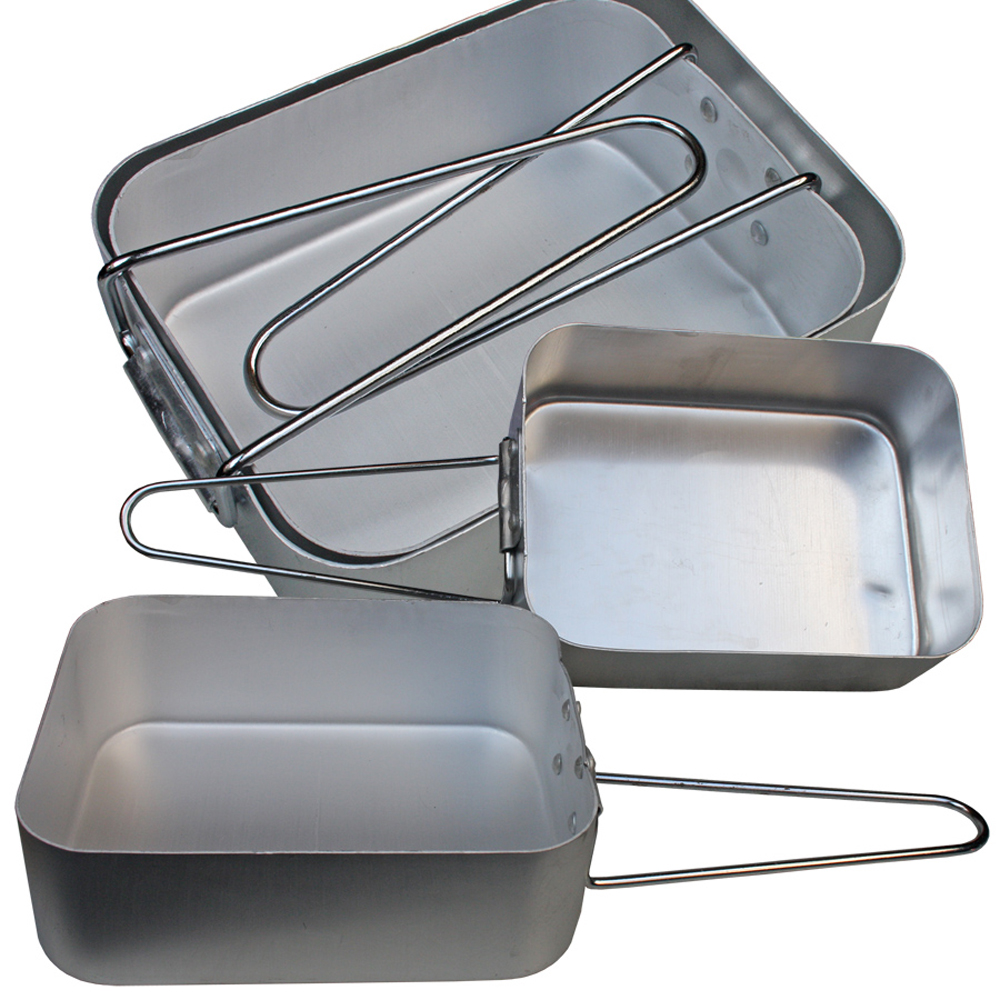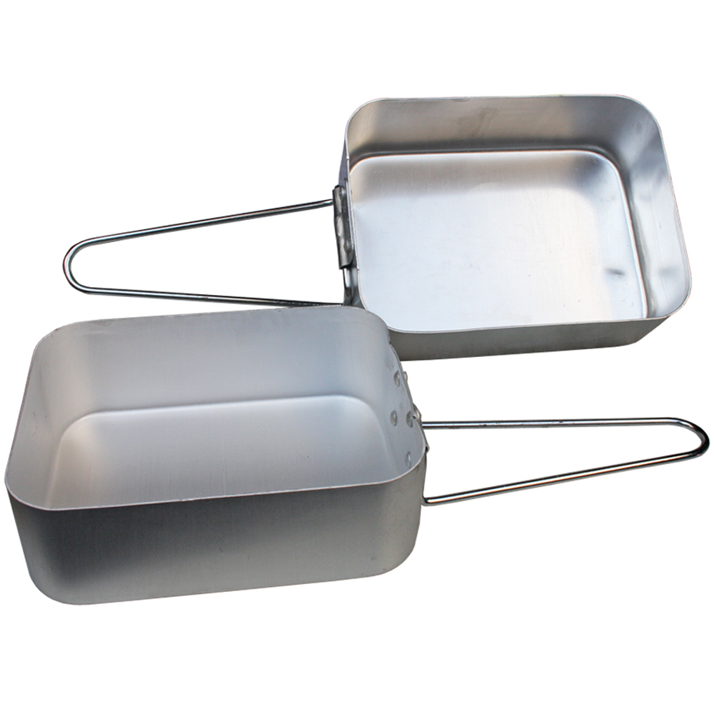 Extrem leichte, rechteckige Alu-Töpfe mit klappbaren Henkel. Beide Töpfe passen platzsparend ineinander Kleines Packmaß - passt in fast jeden Rucksack