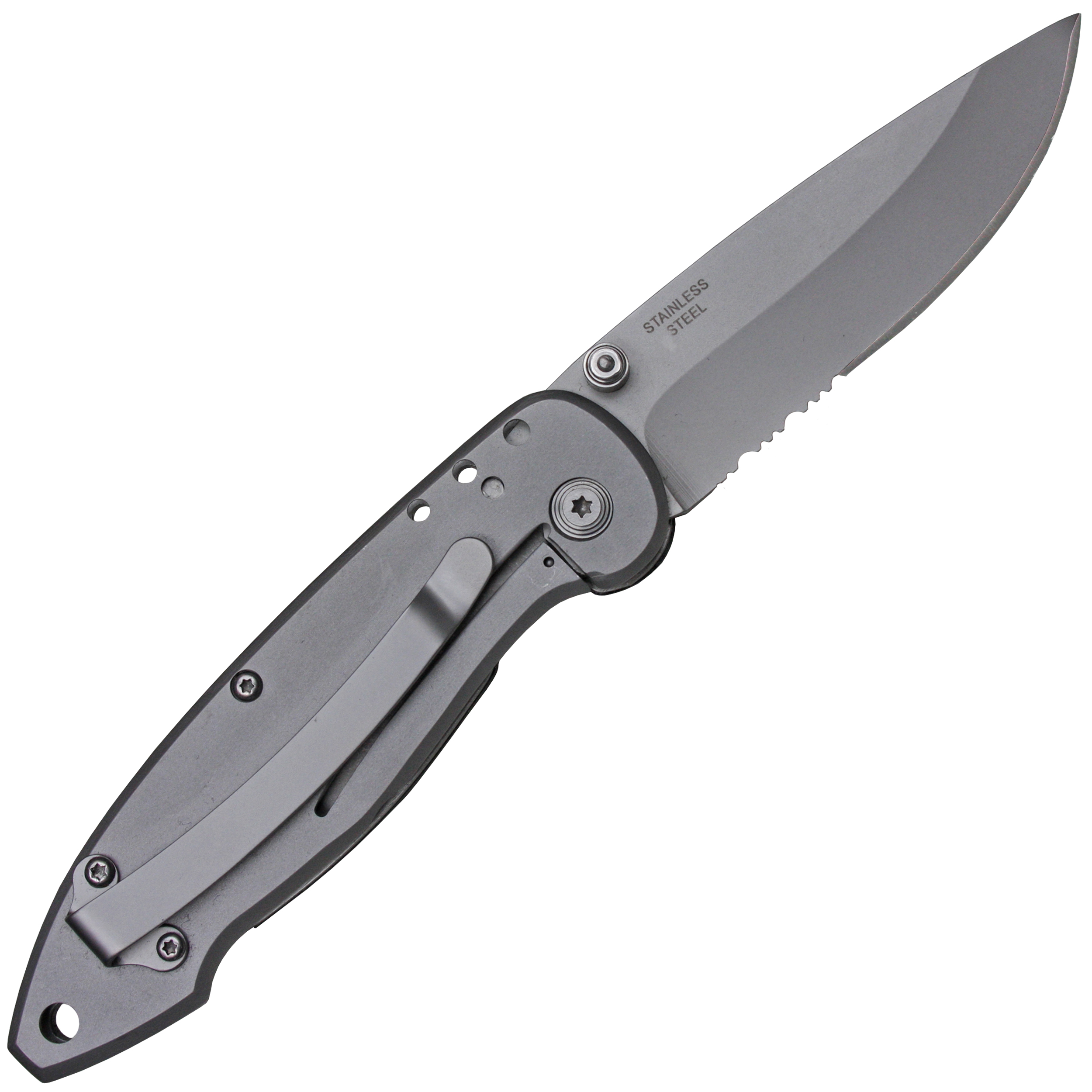 Liner Lock, Klingenarretierung sowie Klingenknopf und Gürtelclip