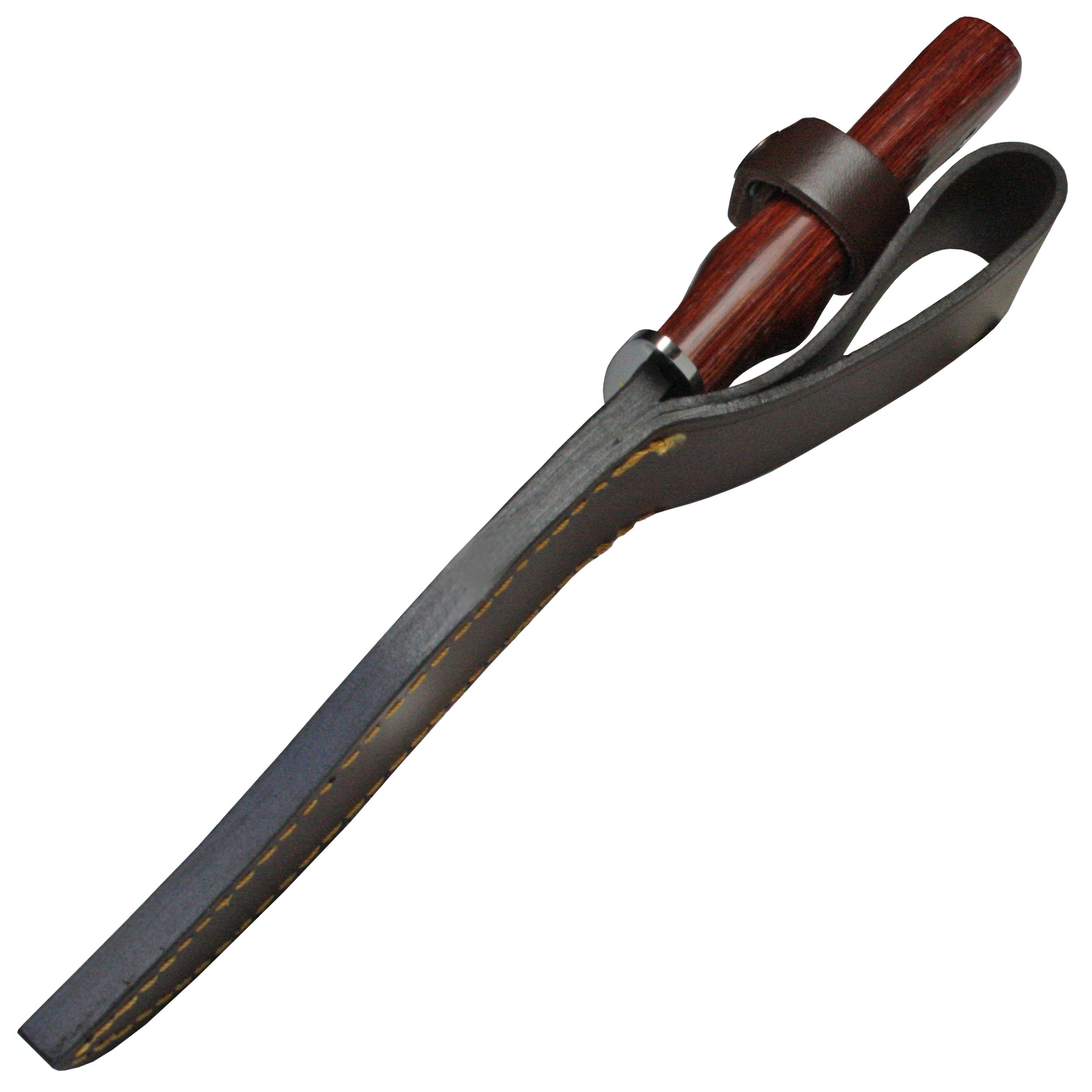 Eine braune Lederscheide mit Gürtelschlaufe gehört zum Lieferumfang!