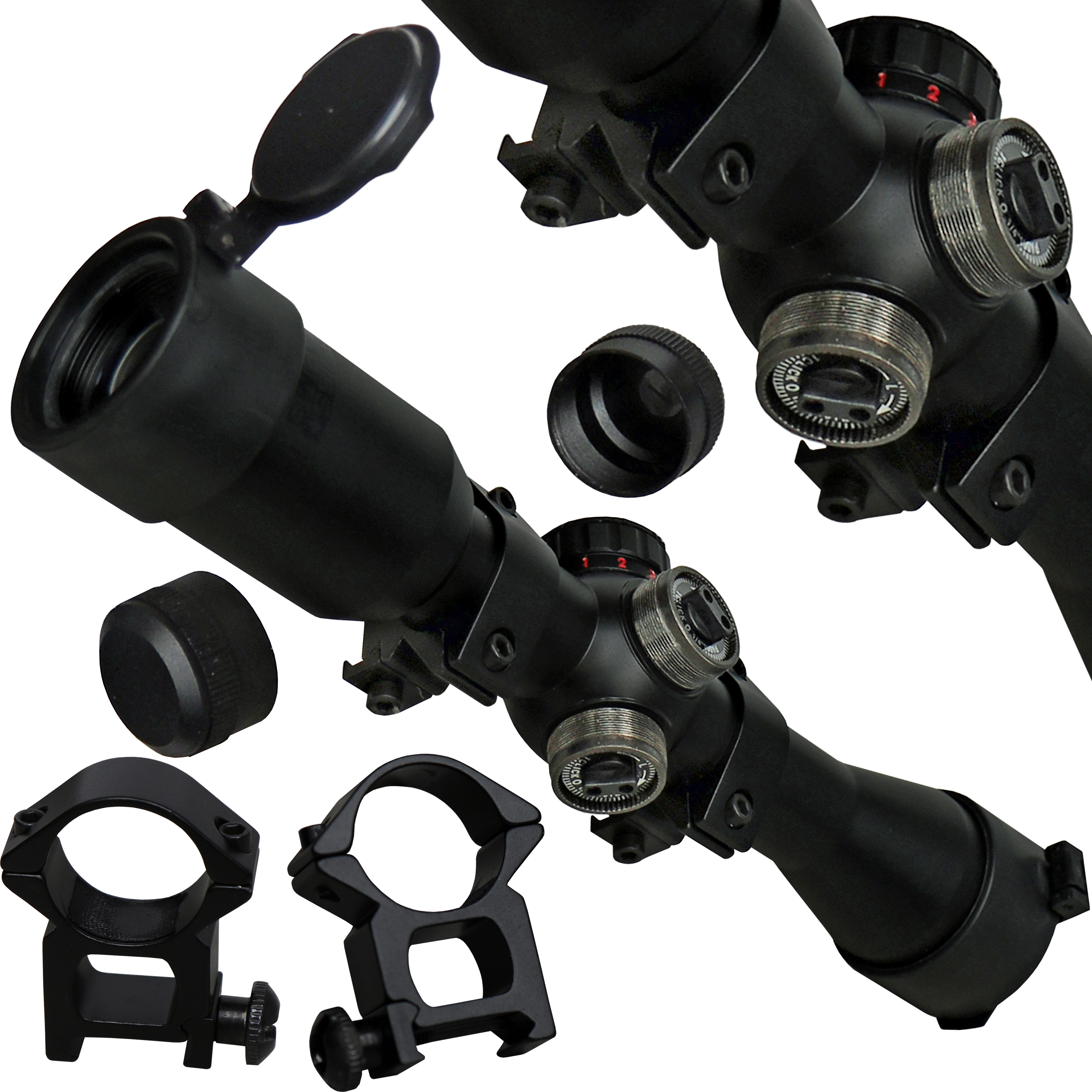 beleuchtem Absehen in rot oder grün, Flip-Up Kappen und einem