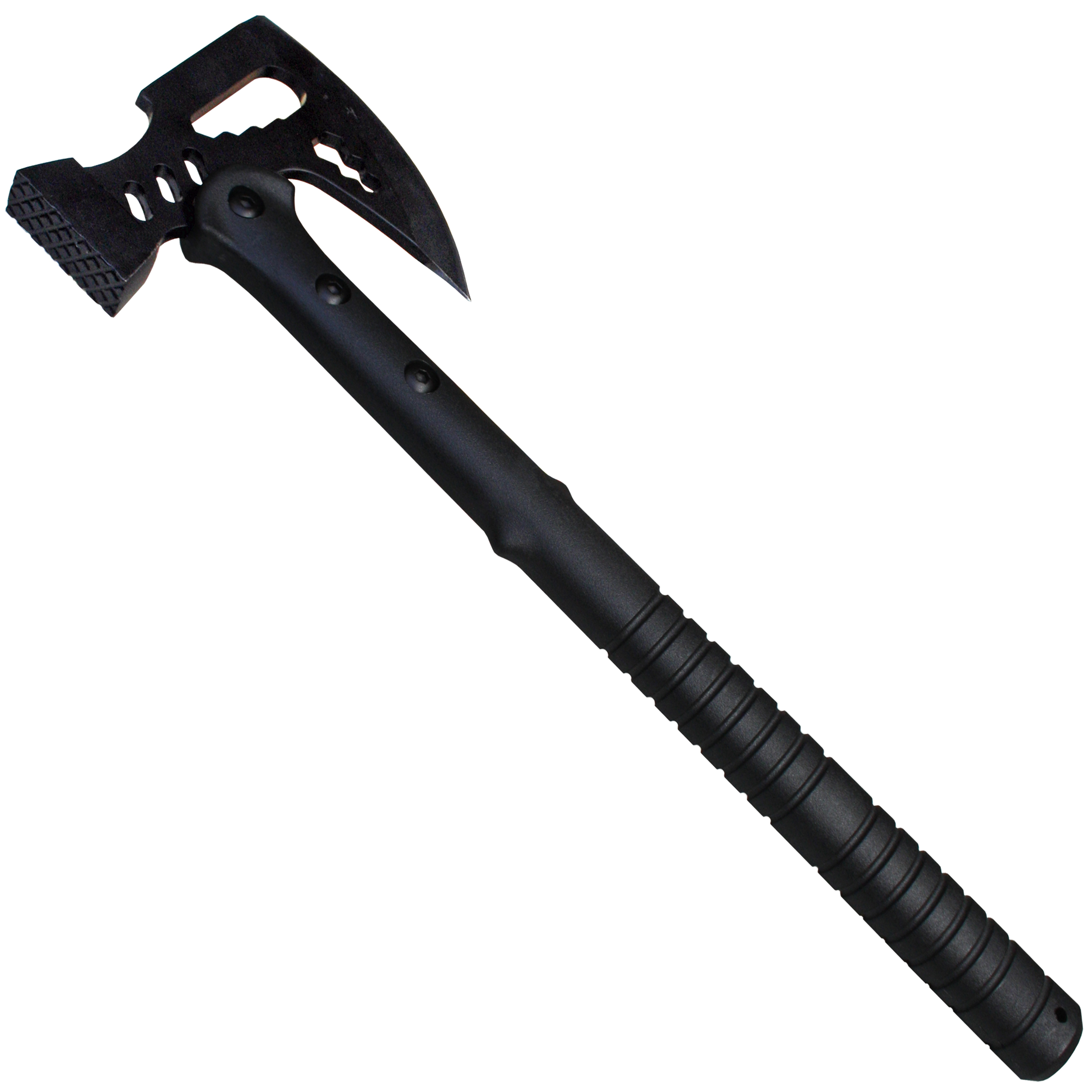 This tactical ax with a triple screwed head made of AISI 420 steel and a