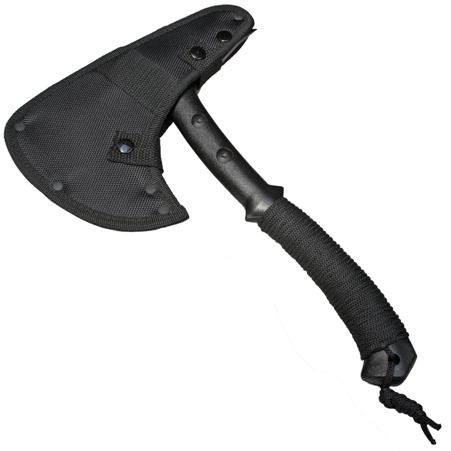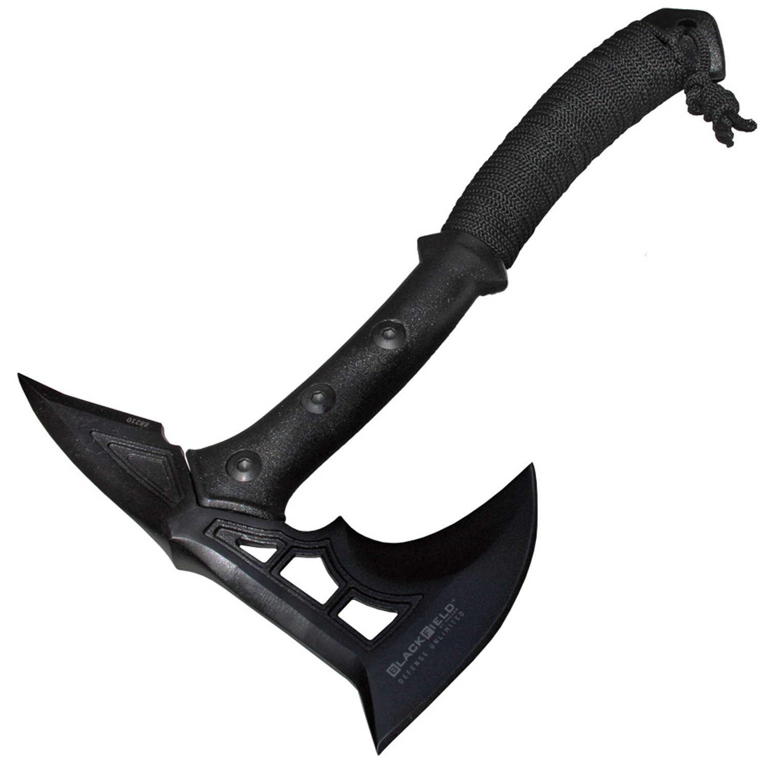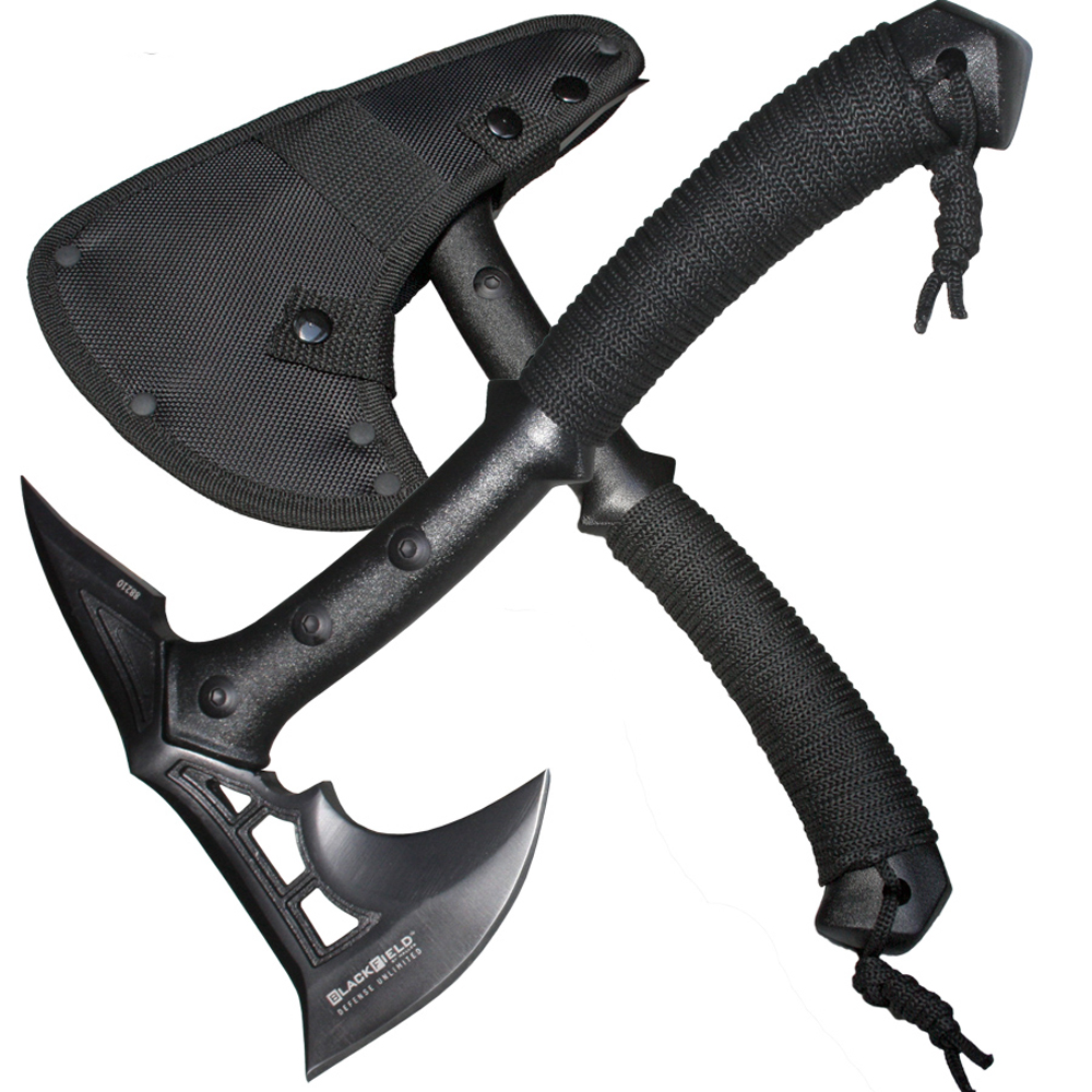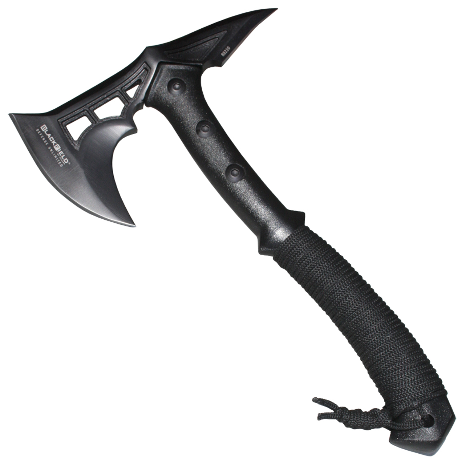 A powerful tactical ax all in black a stable tool for camping and other outdoor activities.
