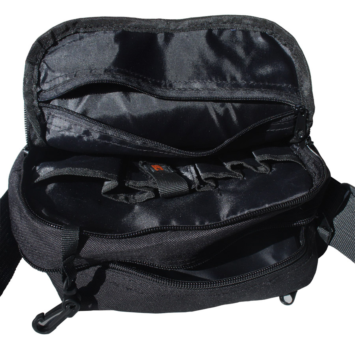 1 mobile phone compartment with Velcro straps and 1 carabiner