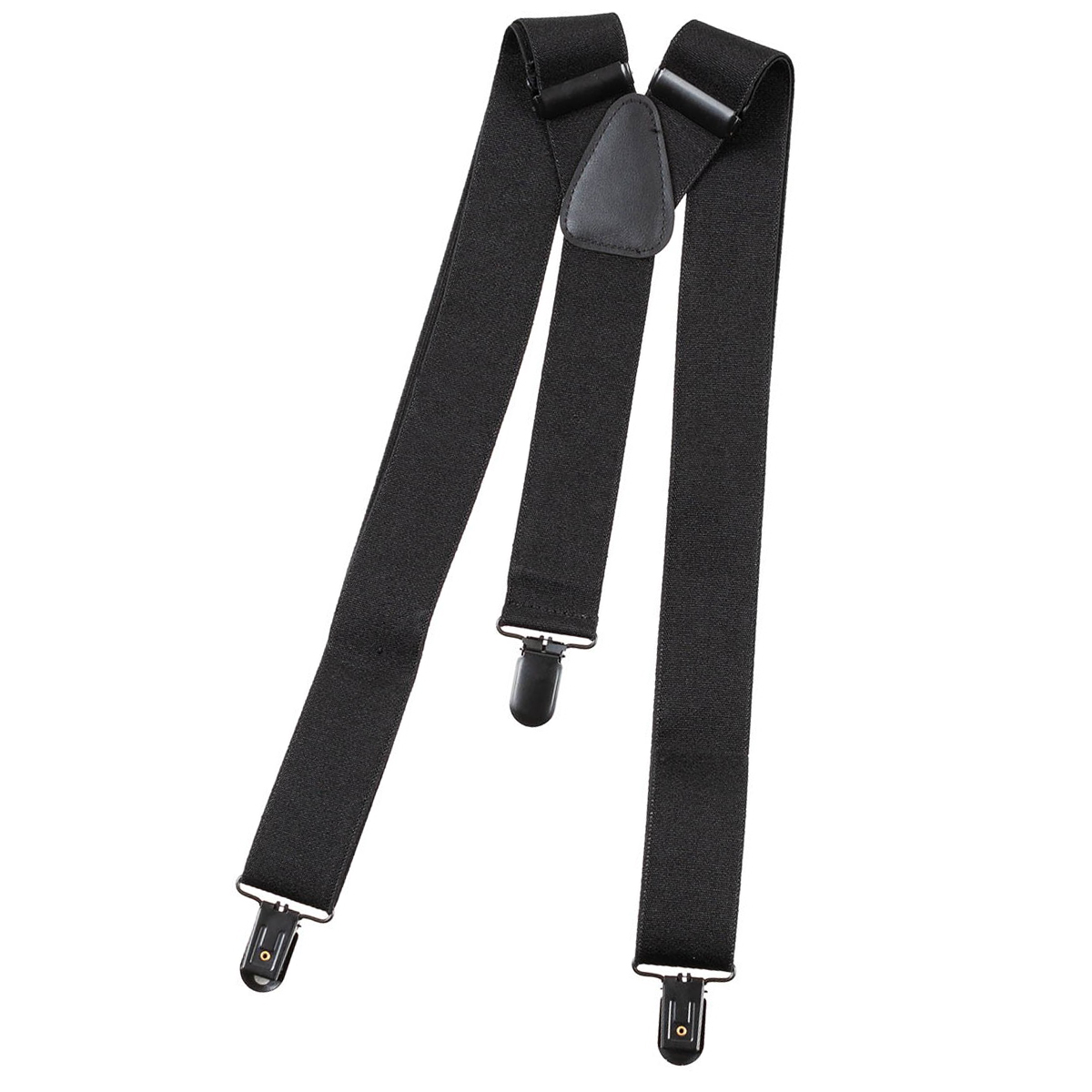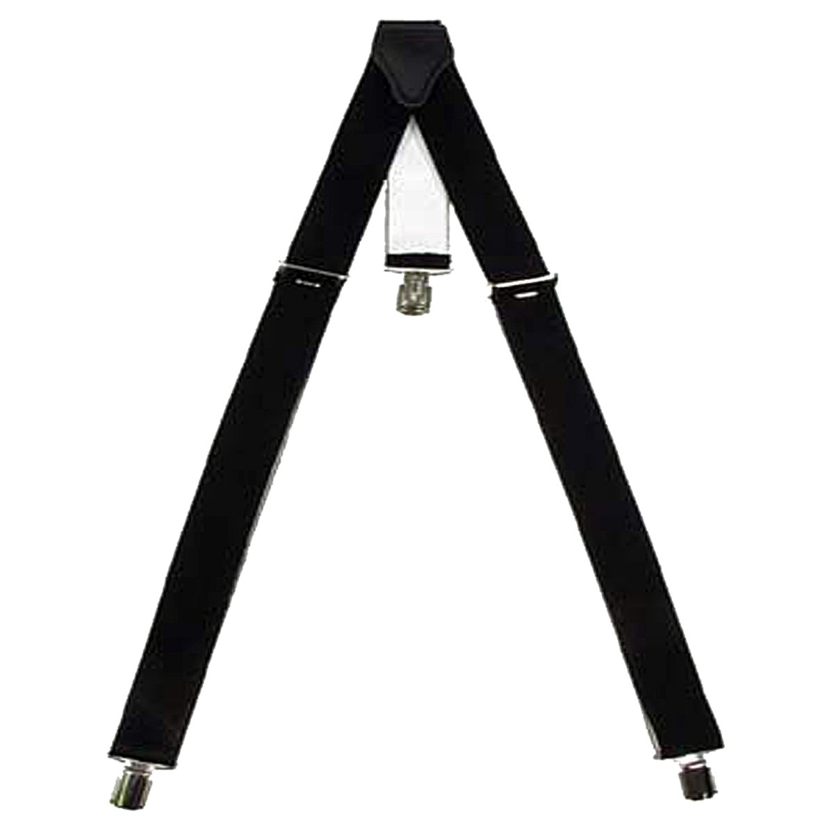 These suspenders have black, elastic straps, the length of which is adjustable